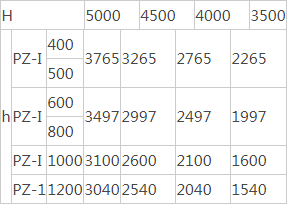 1、水泵房底板標(biāo)高和水倉(或配水巷)入口標(biāo)高之高差H與連接桿長(zhǎng)度h值,本設(shè)計(jì)考慮四種情況,如下表所示:(單位:毫米)